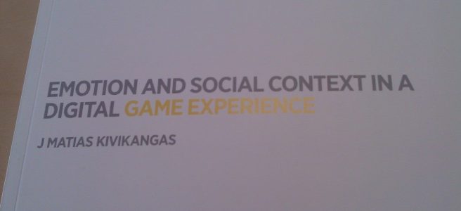 Kivikangas, J.M. (2015). Emotion and social context in a digital game experience. Doctoral dissertation to Department of Psychology, University of Helsinki, Finland. http://urn.fi/URN:ISBN:978-951-51-1818-9. [pdf] Graded “passed with distinction” (best grade, top 10 %).